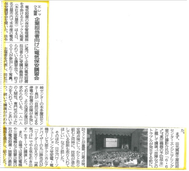 電気保安講習会の様子が中部経済新聞に掲載されました